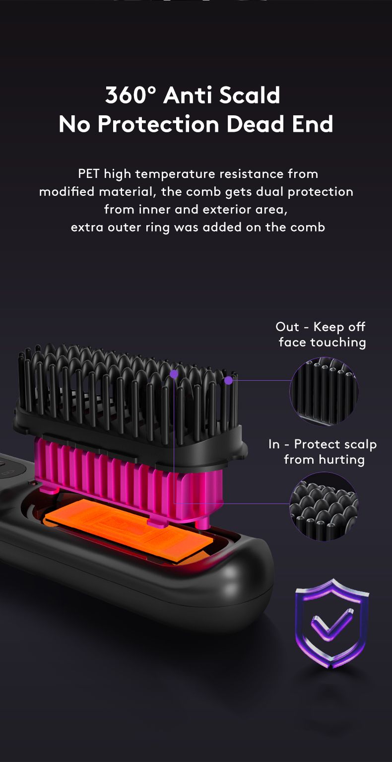 Effortless and Efficient Styling: Our wireless hair straightener brush features advanced heating technology that quickly reaches your desired temperature.